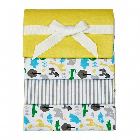 Комплект пеленок Giovanni Shapito Зоопарк - предназначен для малышей с самого рождения. В набор входят 4 пеленки 76х76 см, размер идеально подходящий для пеленания младенца в первые месяцы жизни. Выполнены из качественного, гипоаллергенного хлопкового материала - фланели премиум класса, оптимальная плотность которой составляет 130 g/m2 - подходят как для холодного, так и для теплого времени года. Кроме того, пеленку можно использовать как легкое покрывало, полотенце после купания, накидку при кормлении грудью и в качестве подстилки на пеленальный столик. Яркая красочная расцветка пеленок непременно привлечет внимание малыша, а оригинальный вид упаковки, перевязанной подарочной лентой, станет красивым и памятным подарком.