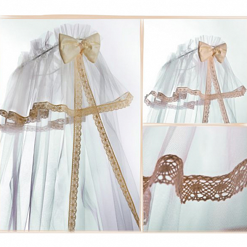 Нежный балдахин MAKKARONI KIDS Ажурный изготовлен из мягкой сетки и декорирован натуральным хлопковым кружевом. Создает ощущение уюта и красоты. Крепится на стандартный крепеж.