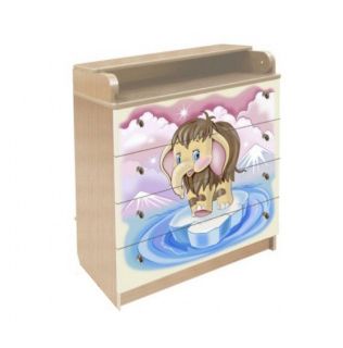 Комод Vlana с трансформируемой крышкой «Слоненок» КДП 80/4-10 - пеленальный,  изготовлен из качественной фурнитуры и материалов – ЛДСП и МДФ, что дает пользователю долгий срок службы изделия. Комод снабжен пеленальной поверхностью с бортиками, что предостережет малыша от случайного падения. Снабжен он 4-мя вместительными ящиками,  которые предназначены для одежды, аксессуаров, игрушек ребенка и всего того, что может пригодиться при пеленании малыша. Комод безопасный - без острых углов. Фасады изделия декорированы привлекательными изображениями, которые наносятся при помощи метода УФ-печати. Модель прекрасно впишется в интерьер любой детской комнаты. Ящики с бесшумным и плавным открытием и закрытием, которые оценят родители в процессе использования, ведь тишина это залог крепкого сна ребенка.