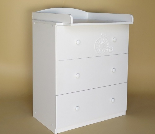 Оборудован съемной пеленальной доской. А когда ребенок вырастет из «пеленочного» возраста, то пеленальный комод не потеряет своей актуальности среди мебели детской комнаты – он просто превратится в обычный комод для одежды и прочих вещей.